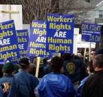 In honor of the International Human Rights Day, the Service Employees International Union and the United Steelworkers of America sponsored a Day of Action tour. The tour started with about 20 people waiting for the bus at the United Steelworkers of America building downtown at8:30am on December 10th. At 10am, we would stop back at this spot between demonstrations to pick up enough people to fill two buses.